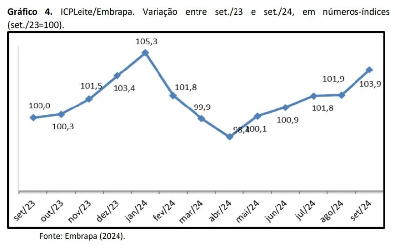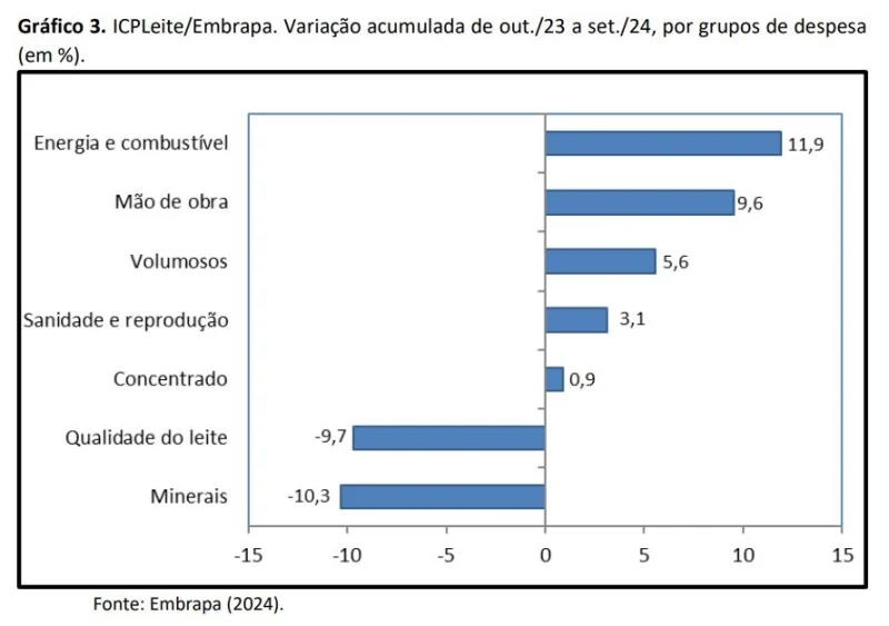 O terceiro trimestre do ano registrou 3,1% de crescimento. Todavia, no acumulado do ano a inflação de custos está em 0,5%. Nos últimos doze meses, o custo de produção de leite cresceu 3,9%. Isso mostra a volatilidade dos preços nos insumos necessários para a produção de leite.