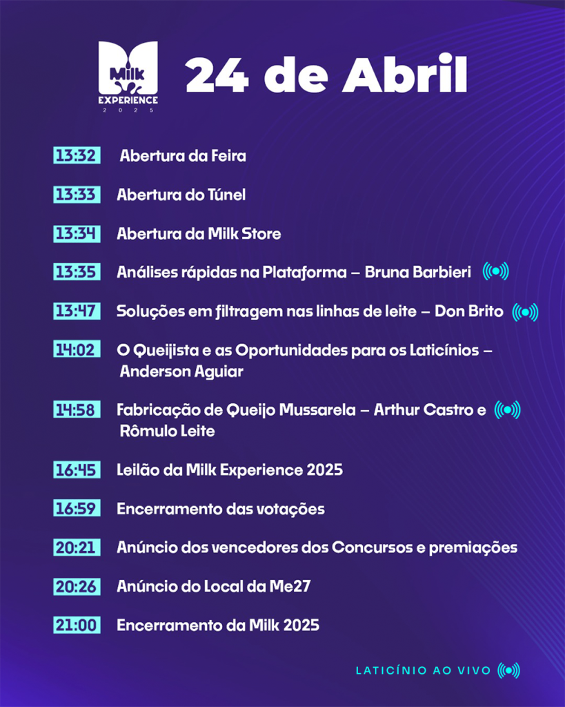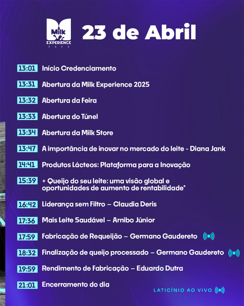 A edição 2025 da Milk Experience, nos dias 23 e 24 de abril, em Maceió (AL), vem cheia de novidades. Para participar, acesse o site do evento e garanta sua inscrição.
