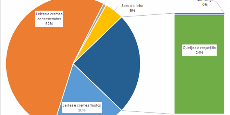 O recuo ocorreu principalmente nas remessas de ‘Outros produtos NCM0401’ e Leite Condensado. Os aumentos verificados em queijos com menor teor de umidade e de soro de leite não foram suficientes para compensar a perda das exportações nos outros itens.